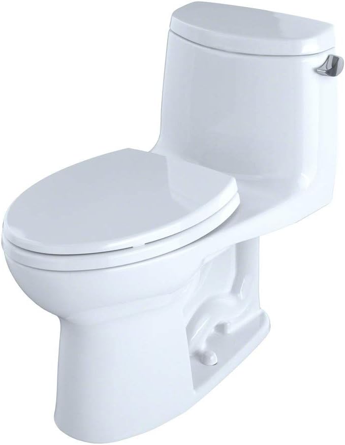 The TOTO UltraMax II is a one-piece, elongated universal height toilet. Its sleek design will look great in just about any bathroom, and the unique exterior glaze ensures it will not fade. The fact it is also bacteria and mold resistant is really helpful, as it makes it much easier to clean the inside and outside of the toilet.